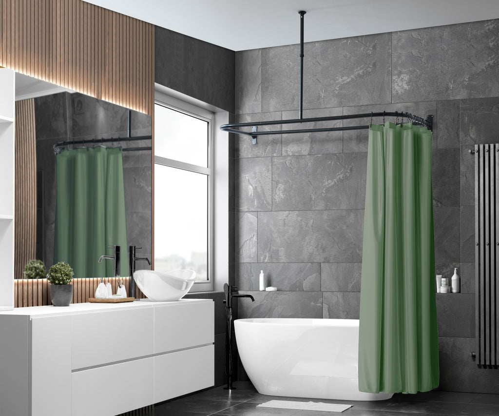 D-shape curtain rod is perfect for freestanding tubs and shower spaces.