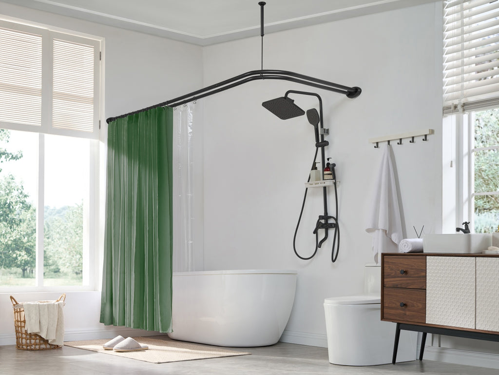 Upgrade your bathroom and create a serene shower space with Loft97 double L shaped shower rods. It is perfect solution for showers of a variety of sizes. Choose from an array of finishes to perfect match your decor.