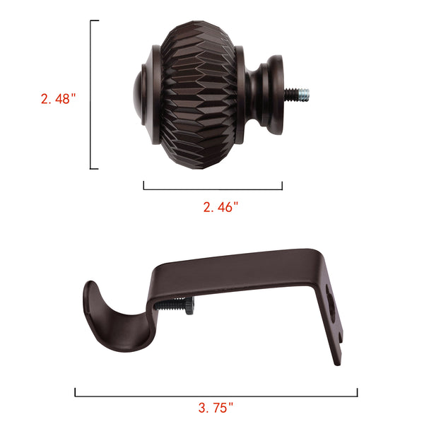 28-48" includes 2 finials, 2 brackets, 1 inner rod, 1 outer rod, 4 screws & 4 anchors.